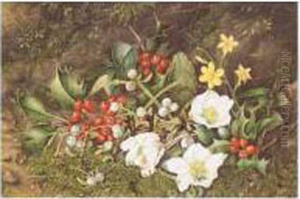 Still Life Of Holly And Christmas Roses