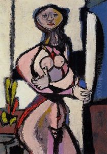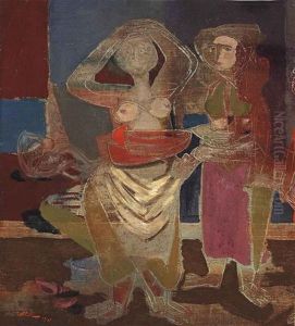 Zwei Madchen (+ Mehrfigurige Szene Und Weibliche Akte, Brush And Ink, Verso)
