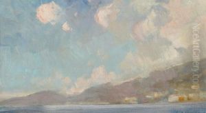 Landschaftstudie Mit Fluss Und Einer Stadt Am Horizont