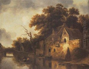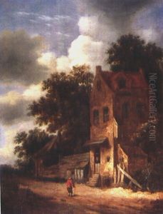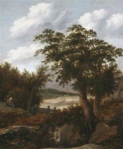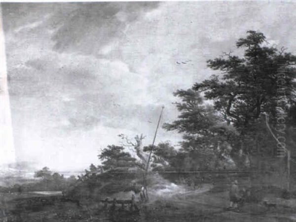 A Wooded Landscape With Peasants Resting On A Track By A Cottage