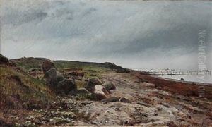 Strandparti Med I Forgrunden Store Sten, Antagelig Arhusbugten