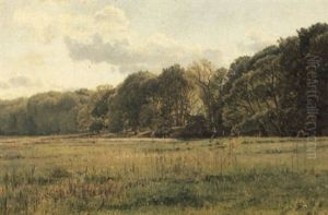 Dansk Sommerlandskab Med Gaende Storke Og Vilde For+rsblomster