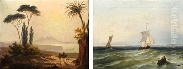Para Obrazow - Pejzaz Z Wedrowcami I Statki Na Morzu (pair)