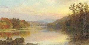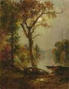Autumn Landscape with Boaters on a Lake
