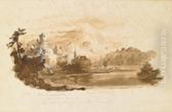 A Castle With A Gothic Church On The Banks Of A River