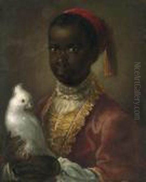 Portrait Of A Blackamoor, Half-length, In A Gold-lined Coat,holding A Cockatoo