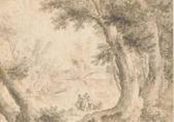 Un Paysage Fluvial Avec Des Blanchisseuses