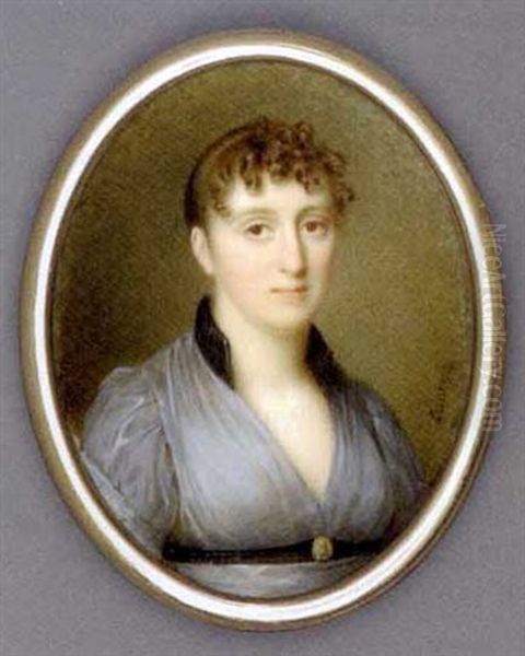 A Young Lady, In Grey Gauze Dress With Black Collar, Cameo-set Black Belt, Her Brown Hair Upswept And Curled