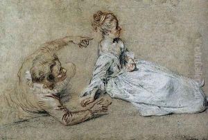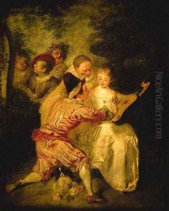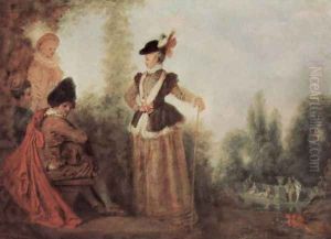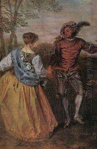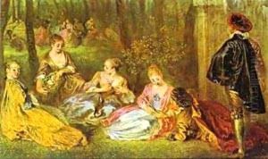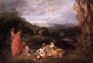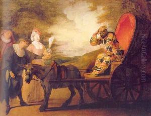 Le Conteur Artists from the Commedia dell'Arte in a landscape