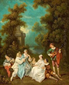 A Wooded Landscape With Elegant Company By A Lake