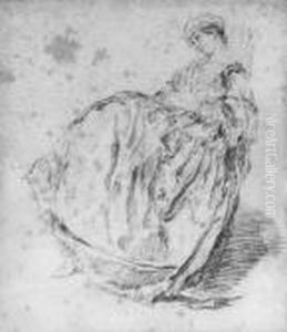 Two Men Standing And An Elegant Lady Seated; And A Companiondrawing By Another Hand