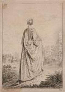 Femme Assise Jouant De La Guitare, Copie De La Gravure De Demarteau D'apres Watteau