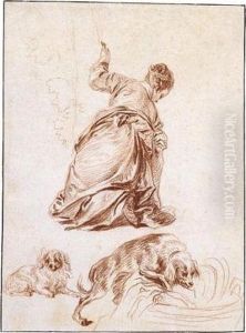A Kneeling Woman, After Veronese, And Two Studies Of Dogs, One After Rubens