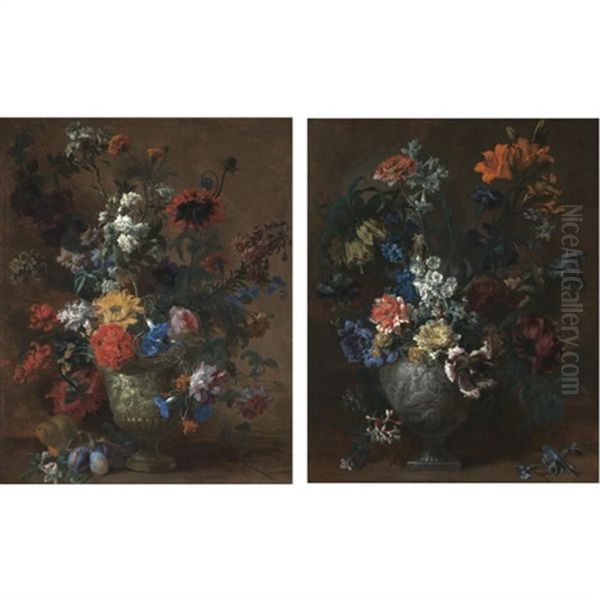 Bring the timeless beauty of Jean-Baptiste Belin de Fontenay the Younger's Carnations, Lilies, Delphinium, Tulips, Fritillaria Imperialis, Iris, Apple Blossom, Honeysuckle, Narcissi (+ Morning-glory, Martagon Lilies, Poppies, A Sunflower; Pair) into your home with a handmade oil painting reproduction. Carefully recreated on canvas by skilled artists using traditional techniques, this piece captures the delicate brushwork, subtle light, and vibrant color of the original masterpiece. With museum-level quality and rich texture, it brings elegance and artistic depth to any space. Enjoy free shipping and make this masterpiece a part of your personal collection.