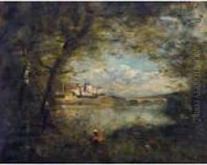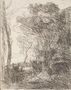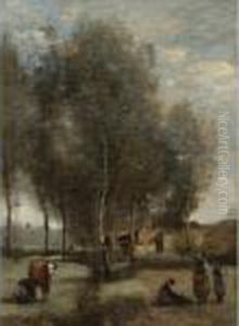 Manner Of Jean Baptiste Camille Corot Landscape With Figures