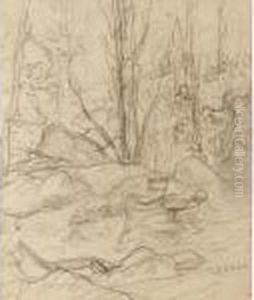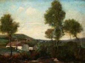 Follower Of Jean-baptiste-camille Corot Landscape With Two Figures And A Group Of Windswepttrees