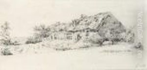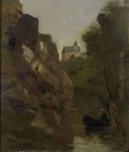 Landschaftspartie Mit Hausern Und Steinbrucke.