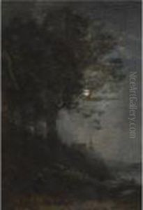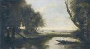 Ville D'avray. L'etang Vu A Travers Le Feuillage (une Vachere Assise Au Bord De L'eau Sous Les Arbres)