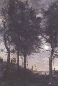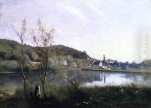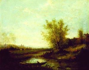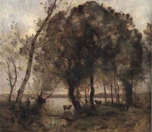 Personnage Sous Les Arbres Au Bord De L'eau Vers 1860-1865