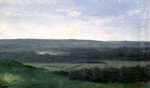 Fields with a Village on the Horizon, Two Figures in the Foreground