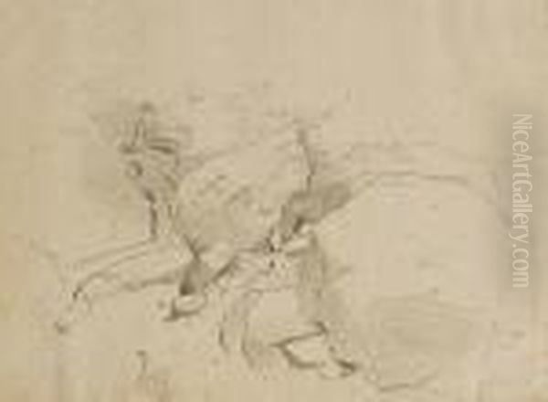 Etude D'arbres En Italie; Genzano, Etude De Rochers Et Paysan S'eloignant Sur Un Mulet