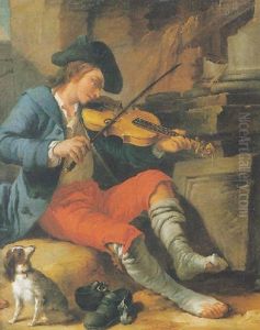 An Amorous Couple In A Kitchen Interior With An Old Woman And A Child Looking On