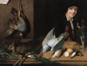 A Young Man Holding A Bird's Nest In His Hat With A Young Family In A Landscape