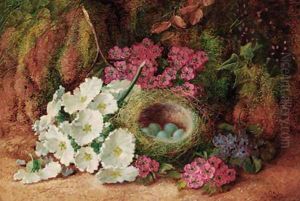 A Young Man Holding A Bird's Nest In His Hat With A Young Family In A Landscape