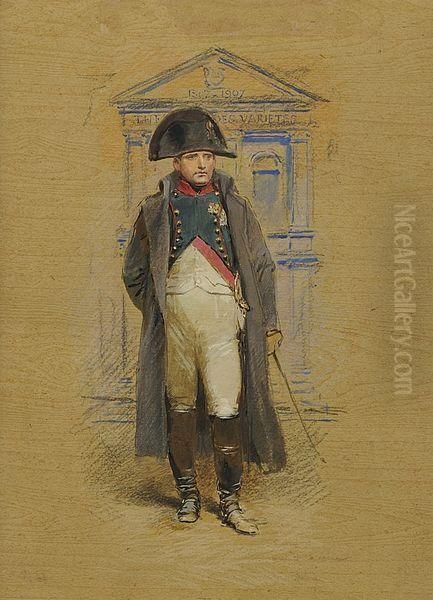 L'empereur Napoleon Ier En Uniforme De Chasseurs A Cheval Devant Letheatre De Varietes.