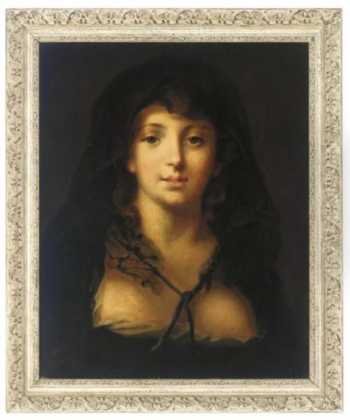 Portrait Of A Girl, Bust-length, In A Black Veil And Black Dress