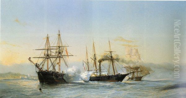 Bring the timeless beauty of Jean-Baptiste Henri Durand-Brager's Naval battle in front of the Moroccan coast between two Moroccan brigs and a French wheeled-corvette on the occasion of the bombing of Mogador by the French squadron in 1844. into your home with a handmade oil painting reproduction. Carefully recreated on canvas by skilled artists using traditional techniques, this piece captures the delicate brushwork, subtle light, and vibrant color of the original masterpiece. With museum-level quality and rich texture, it brings elegance and artistic depth to any space. Enjoy free shipping and make this masterpiece a part of your personal collection.