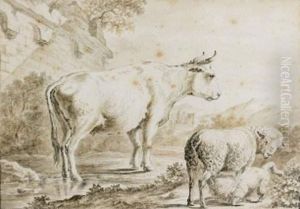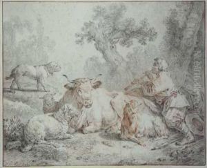 Les Oeufs Casses: A Shepherdess Startled By A Drover And His Cattle In A Pastoral Landscape