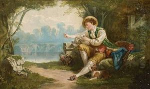 A Shepherdess In A Landscape With A Putto Holding A Basket Of Flowers