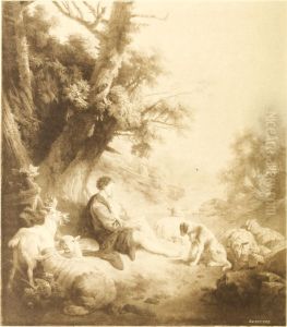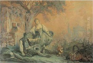 An Arcadian Landscape With A Shepherd And Shepherdess Carousing Bya Tree