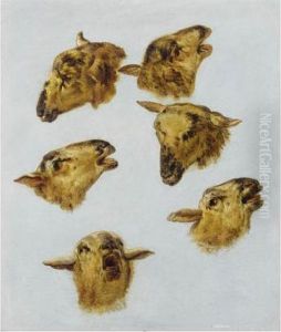 Six Sheets With Studies Of Various Animals, Including Sheep, Cows, Goats, Deer, Bears, Foxes And Mules