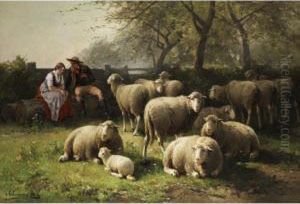 Hirtenpaar Mit Schafen