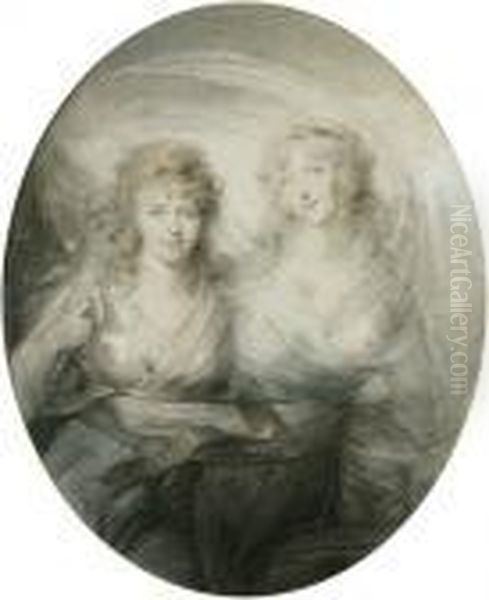 Doppelportrat Von Zwei Jungen Damen Mit Wehendem Umhang