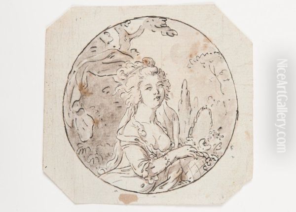 Kvinna med blomsterkorg (studie till miniatyr)