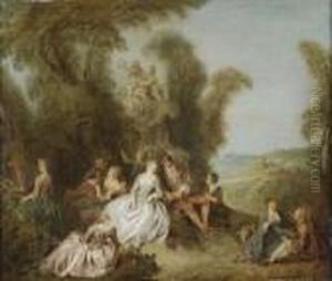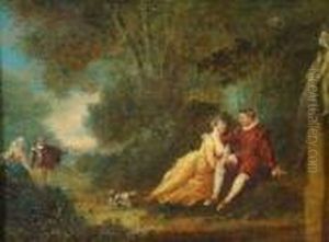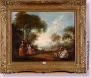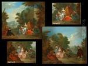 Elegant Figures Resting In An Extensive Landscape: A Pair Of Paintings