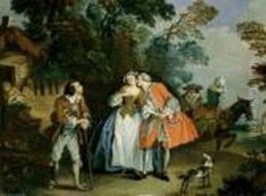 A Couple Holding A Bird Cage With A Shepherdess In A Landscape