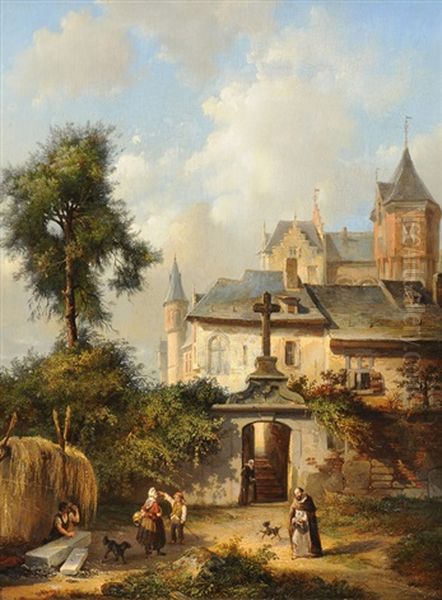 Ansicht Eines Klosters Mit Figurenstaffage