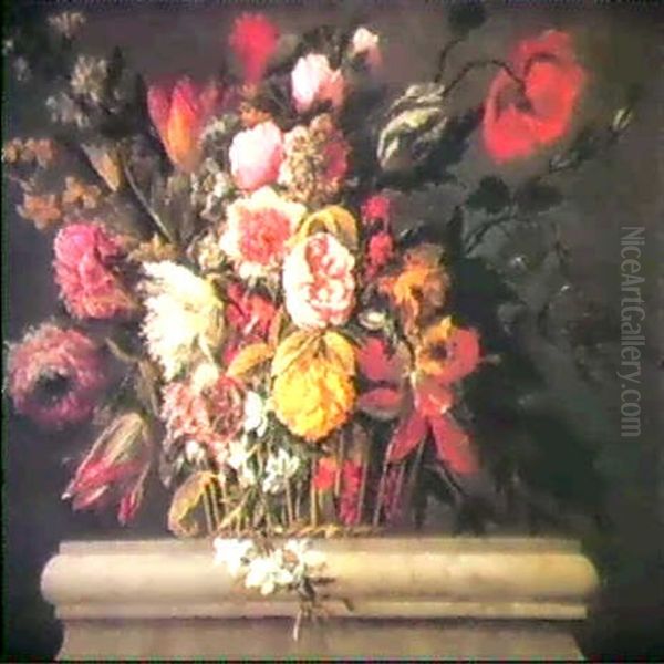 Corbeille De Fleurs Sur Un Entablement Oil Painting by Jean-Baptiste Monnoyer