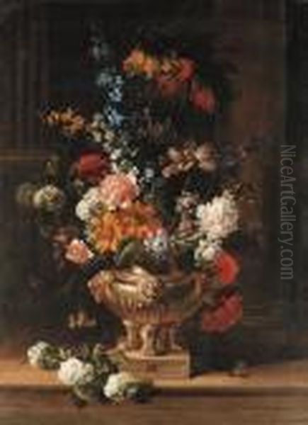 Bring the timeless beauty of Jean-Baptiste Monnoyer's Parrot Tulips, Chrysanthemum, Hydrangea, Honeysuckle, Borage,paeonies, Crown Imperial Fritillaries And Other Flowers In Asculpted Urn On A Ledge, A Column Beyond; And A Canterbury Bell,parrot Tulips, Lilac, Ivy Sprays, A Paeony And Other Flowers I into your home with a handmade oil painting reproduction. Carefully recreated on canvas by skilled artists using traditional techniques, this piece captures the delicate brushwork, subtle light, and vibrant color of the original masterpiece. With museum-level quality and rich texture, it brings elegance and artistic depth to any space. Enjoy free shipping and make this masterpiece a part of your personal collection.