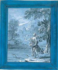 A River Landscape With A Hound Chasing Ducks