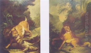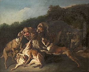 Hounds With A Wolf At Bay In A Landscape