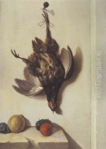 A Still Life Of A Hung Hare And Two Birds In A Landscape