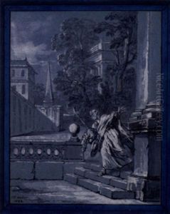 A Romantic Landscape With Ducks By A Fountain
