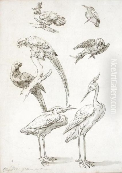 Bring the timeless beauty of Jean-Baptiste Oudry's Deux Etude D""""echassiers, Deux Etudes De Perroquets / Perches Sur Une Branche, Et Trois Etudes D""""oiseaux Divers into your home with a handmade oil painting reproduction. Carefully recreated on canvas by skilled artists using traditional techniques, this piece captures the delicate brushwork, subtle light, and vibrant color of the original masterpiece. With museum-level quality and rich texture, it brings elegance and artistic depth to any space. Enjoy free shipping and make this masterpiece a part of your personal collection.
