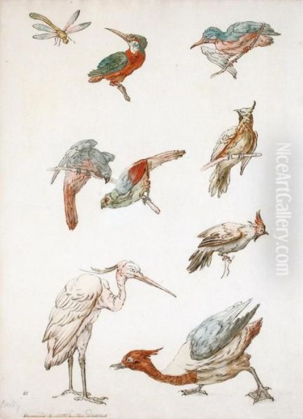 Sept Etudes D""""oiseaux (dont Un Pic-vert), Un Heron Et Une Libellule