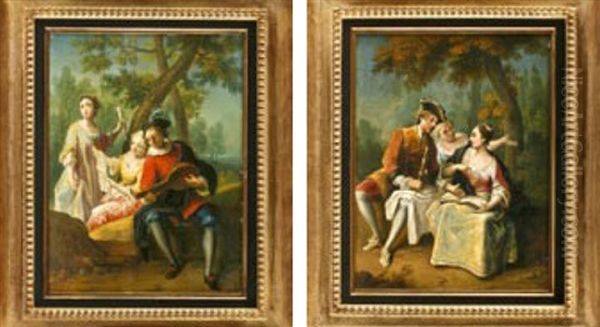 Hofische Gesellschaft Im Park Beim Musizieren (+ Another; Pair)